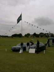 The day started with a final setting up of the stand. On the left we see the raising of the flag. The weather soon changed for the worse and rain set in but the poor weather did not dampen the enjoyment |